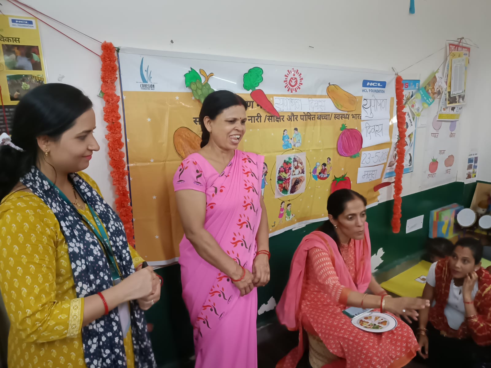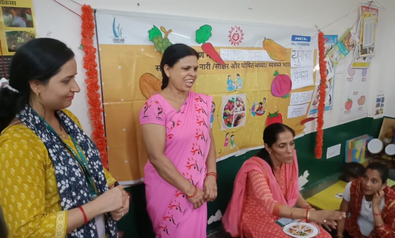 एचसीएल-कोहेजन फाउंडेशन की मंजू शर्मा ने बताया- जिस समय बच्चे के दांत निकल रहे होते हैं अक्सर उन्हें उल्टी-दस्त की शिकायत हो जाती है। यह दांत निकलने की वजह से नहीं बल्कि उस दौरान बच्चा जमीन पड़ी चीजें मुंह में डाल लेता है, जिससे वह संक्रमण का शिकार हो जाता है और उसे उल्टी-दस्त हो जाते हैं। इसलिए यह ध्यान देना जरूरी है कि बच्चा जमीन से उठाकर कुछ भी न खाने पायें। इसके अलावा उसे खाना खिलाते वक्त साफ सफाई पर ध्यान देना बहुत जरूरी है। उन्होंने बताया किस उम्र तक बच्चों को क्या और कैसा खाना देना हैं। उन्होंने यह भी बताया- बच्चा कम वजन का पैदा होता है तो दूध देने की बारम्बारता बढ़ानी है। उसे आठ से नौ बार दूध देना है। इन सभी बातों का ध्यान रख कर सभी लोग अपने बच्चों को स्वस्थ ऱख सकेंगे। उन्होंने तिरंगे फूड के इस्तेमाल पर जोर दिया। खाने में लाल सफेद और हरा रंग का इस्तेमाल होना जरूरी है। लाल रंग में चुकंदर, सेब टमाटर, सफेद यानि दूध, दही पनीर, और हरा मतलब हरी साग सब्जियां।