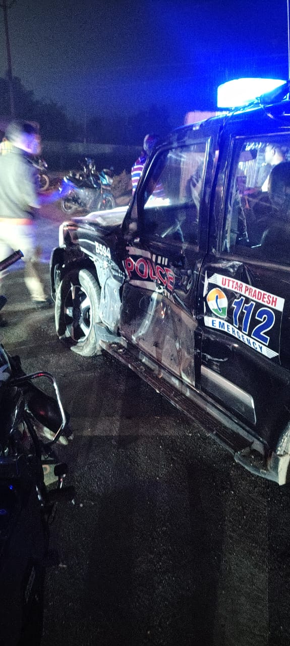 इटावा: डंफर ने पुलिस की पीआरवी में मारी टक्कर एक सिपाही की मौत, एक गंभीर रूप से घायल