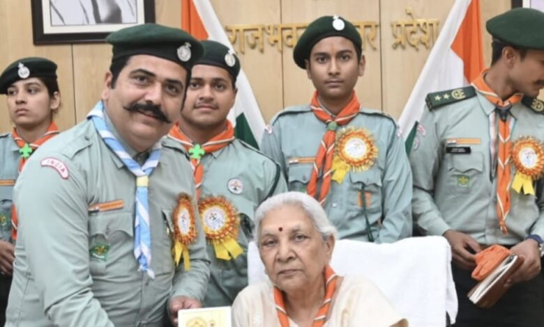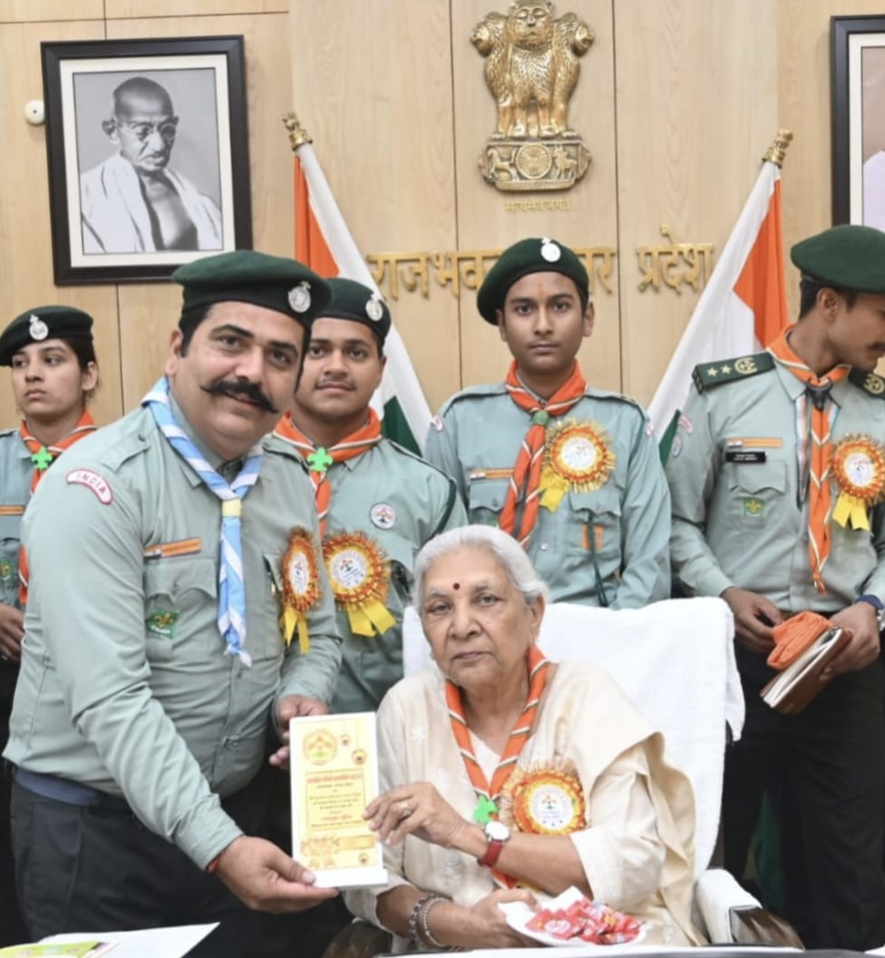 भारतीय संविधान दिवस एवं हिंदुस्तान स्काउट गाइड के स्थापना दिवस पर भारत स्काउट गाइड संगठन का एक दल राज्यपाल उत्तर प्रदेश आनंदीबेन पटेल से मिला, जिस पर उन्होंने स्काउट गाइड की महत्व बताते हुए विद्यालयों में छात्र-छात्राओं को कैसे प्रशिक्षण देकर राष्ट्र भावना अनुशासन सिखाते हैं बताया। इस अवसर पर राज्यपाल आनंदीबेन पटेल ने स्काउट गाइड के क्षेत्र में उत्कृष्ट कार्यो के लिए विभिन्न जिलों के 22 स्वयंसेवकों को सम्मान दिया। साथ ही कहा कि यह जो बेटियां है, यह बढ़कर देश का नाम रोशन करने में लगी है और गाइड बनकर राष्ट्र सेवा में बराबर की सहभागिता निभा रही है एवं सभी को भारतीय संविधान के स्थापना दिवस पर स्काउट एवं गाइड सहित समस्त नागरिकों को संविधान कर्तव्य पालन करने चाहिए। राज्यपाल ने सभी के उज्जवल भविष्य की कामना करते हुए अपने जीवन को राष्ट्रहित में देश हित में व समाज हित में लगाने के लिए प्रेरित किया। इस उम्र में भी राज्यपाल की कार्यशैली को देखकर सभी स्काउट गाइड एवं पदाधिकारी गण दंग रह गए। सकारात्मक ऊर्जा और बच्चों को साहस देने वाली अपने उत्तर प्रदेश की राज्यपाल आनंदीबेन पटेल से हम सभी को शिक्षा लेनी चाहिए। इस अवसर पर बागपत जिले से डॉक्टर मनोज बिश्नोई सहारनपुर जिले से डॉक्टर मनोज सिंधी एवं मनोहर शर्मा मेरठ जिले से वरुण यादव शामली जिले से प्रॉफेसर अमितेश कुमार मुजफ्फरनगर जिले से श्वेता राठी , संजीव जैन ने मिलकर महामहिम राज्यपाल जी को संस्था की ओर से बैज व स्कॉफ पहनाया एवं संस्था का ध्वज व प्रतीक भी भेंट किया एवं राज्यपाल ने इन शिक्षकों को समाज में उत्कृष्ट कार्य करने के लिए सम्मान दिया। साथ ही सम्मान प्राप्त करने वाले स्काउट गाइड में मुख्य रूप से आदित्य यादव हिमांशु बिष्ट आयुष त्यागी चंचल चाहल पूर्णव दृष्टि नेगी सत्यम चाहर आदि रहे।