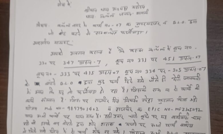 बीएलए ने कहा कि सभी फार्म-7 एक ही नाम से भरे गए हैं, जबकि फार्म जमा करने वाले राजवीर सिंह ने फ़ोन पर कहा कि उन्होंने कोई फार्म-7 नहीं भरा। जानकारी मिली है कि विधानसभा के अन्य बूथों पर भी इसी तरह के प्रयास किए जा रहे हैं।