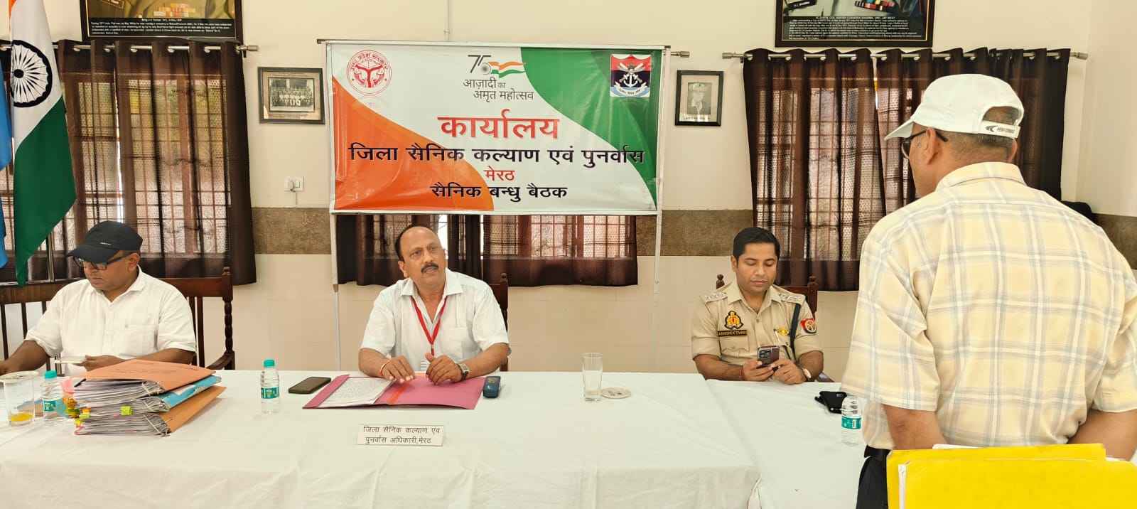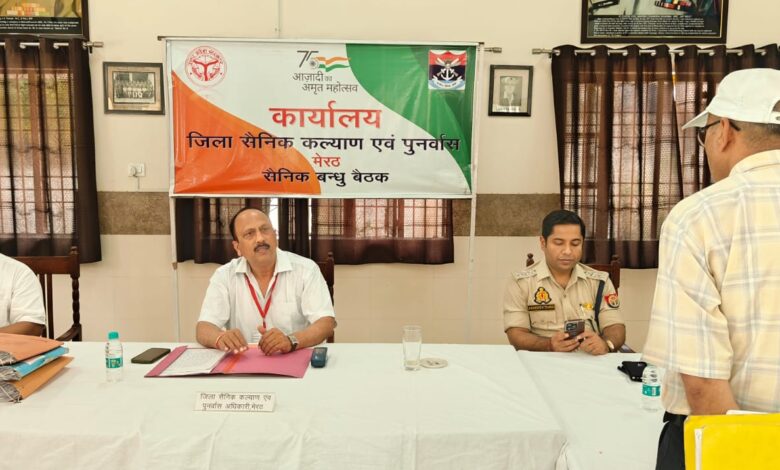सैनिक बन्धु बैठक जिला सैनिक कल्याण एंव पुनर्वास अधिकारी मेरठ, कैप्टन (आई.एन) राकेश शुक्ला, नगर मजिस्ट्रेट अनील कुमार की अध्यक्षता में की गई।