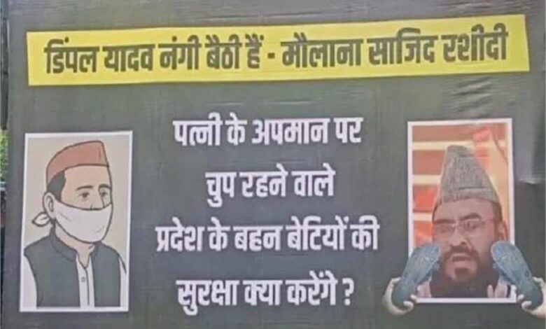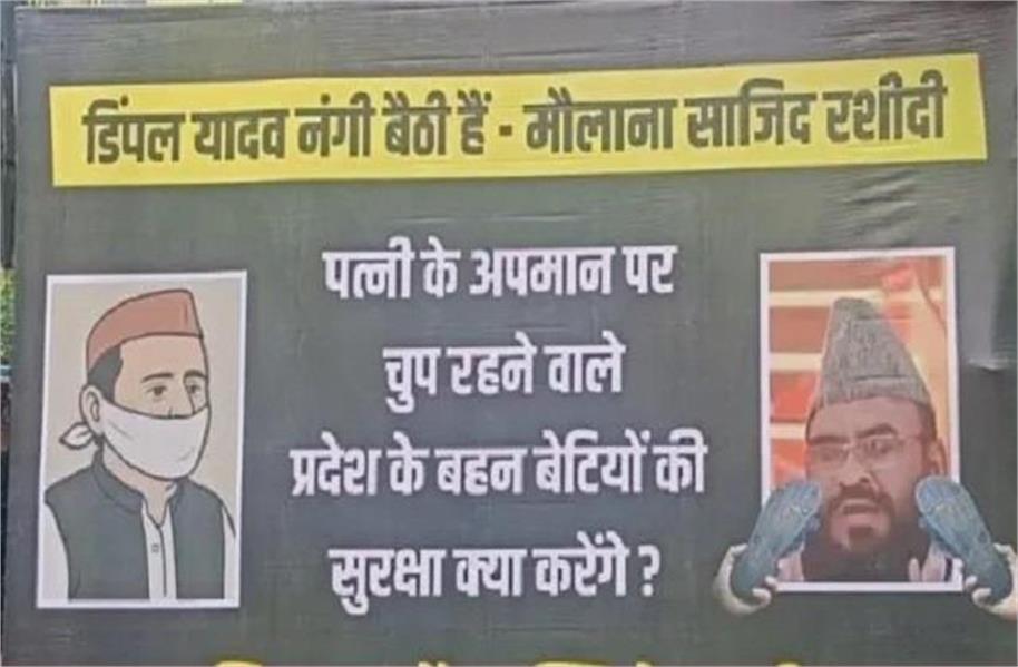 दरअसल, मौलाना साजिद रशीदी ने सपा सांसद डिंपल यादव के पहनावे पर टिप्पणी किया था, जिसके बाद से बीजेपी ने मोर्चा खोल दिया है, वहीं सपा प्रमुख अखिलेश यादव की चुप्पी को लेकर भी सवाल उठाए जा रहे हैं। इसी बीच बीजेपी एमएलसी और प्रदेश महामंत्री सुभाष यदुवंश ने राजधानी लखनऊ के कई प्रमुख चौराहों पर पोस्टर लगवाकर अखिलेश यादव को सीधे-सीधे निशाने पर लिया है। इन पोस्टरों में सवाल उठाया गया है कि जो व्यक्ति अपनी पत्नी के अपमान पर भी चुप रहता है, वह प्रदेश की बहन-बेटियों की सुरक्षा कैसे करेगा?