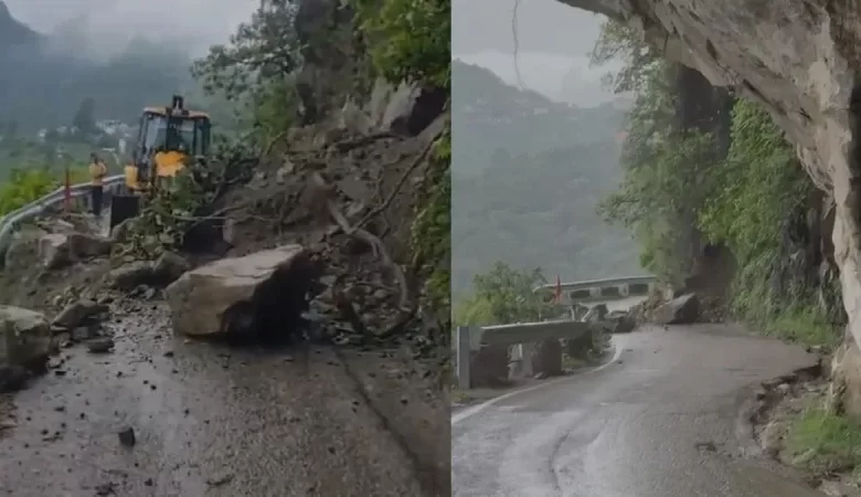 नैना देवी के पास लैंडस्लाइड का वीडियो आया सामने, सड़क जाम होने से कई श्रद्धालु फंसे