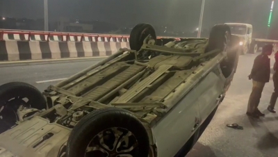 नोएडा में तेज रफ्तार कार पलटी, महिला की मौत, पांच घायल