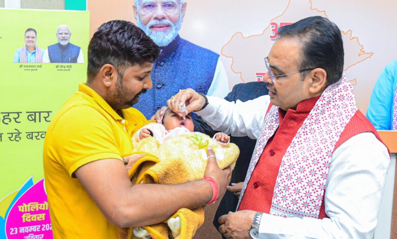 जयपुर। राजस्थान में नौनिहालों को पोलियो जैसी घातक बीमारी से सुरक्षित करने की दिशा में एक बार फिर बड़ा कदम उठाया गया है। मुख्यमंत्री भजनलाल शर्मा ने रविवार को मुख्यमंत्री निवास पर बच्चों को पोलियो की दवा पिलाकर प्रदेशव्यापी उप राष्ट्रीय पल्स पोलियो अभियान का शुभारंभ किया। इस अवसर पर उन्होंने ‘दो बूंद हर बार, पोलियो पर जीत रहे बरकरार’ संदेश वाले पोस्टर का भी विमोचन किया।