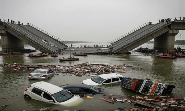 बड़ा हादसा: भरभराकर ढहा 43 साल पुराना पुल, कई वाहन नदी में गिरे, दो लोगों की गई जान