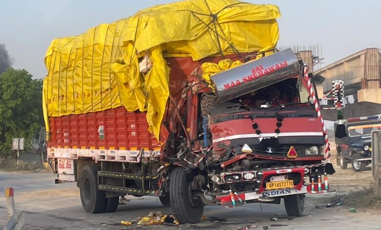 बरेली में ट्रक और डीसीएम की भिड़ंत, आधे घंटे फंसा रहा चालक