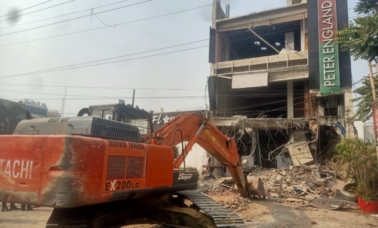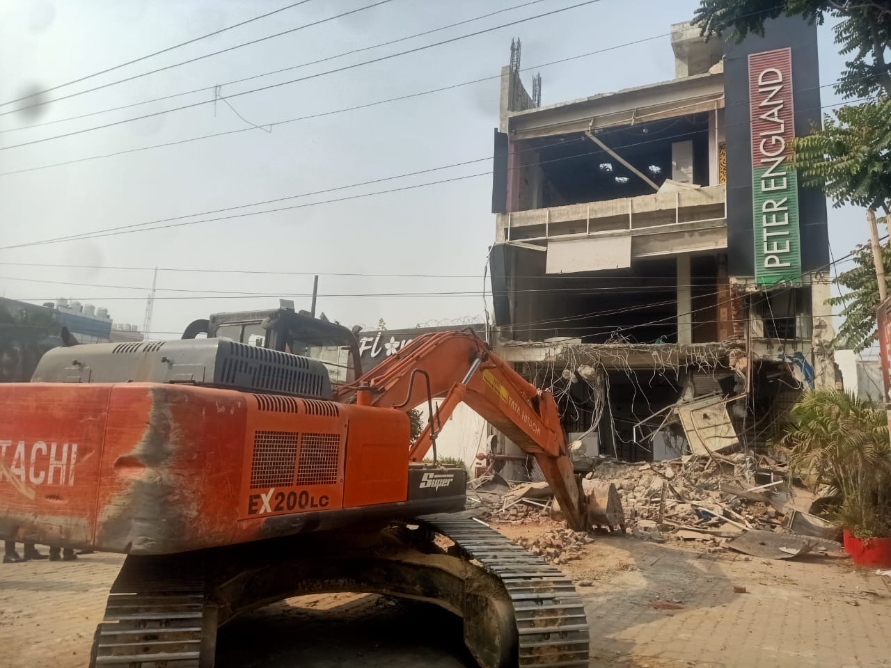 फ्लोरा गार्डन के पास बना यह विशाल शोरूम शनिवार दोपहर से ही कार्रवाई के दायरे में था, लेकिन मजबूत संरचना और जटिल अंदरूनी डिज़ाइन के कारण देर रात तक भी ढहाया नहीं जा सका। अंधेरा और सुरक्षा कारणों से ऑपरेशन रोकना पड़ा, मगर पूरी रात पुलिस ने परिसर को घेर कर रखा। रविवार को जैसे ही जेसीबी ने दोबारा प्रहार किया, पूरा इलाका धमक से गूंज उठा। मौके पर कई थानों की फोर्स तैनात रही और सीओ तृतीय पंकज श्रीवास्तव खुद निगरानी करते दिखे।