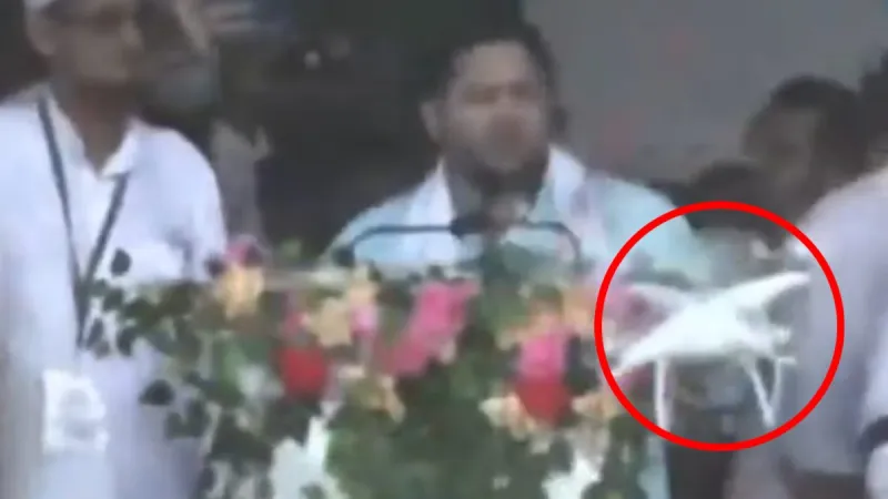राजद नेता और नेता प्रतिपक्ष तेजस्वी यादव पटना के गांधी मैदान में ‘वक्फ बचाओ संविधान बचाओ’ सम्मेलन को संबोधित करने पहुंचे थे। इस दौरान यहां एक हादसा टल गया और तेजस्वी यादव बाल-बाल बच गए। दरअसल कवरेज में लगा एक ड्रोन तेजस्वी यादव की तरफ तेजी से आया। किसी को कुछ समझ आता, तब तक ड्रोन तेजस्वी यादव के करीब पहुंच गया और पोडियम से टकरा गया।