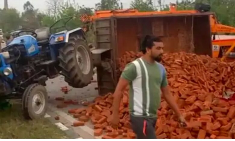 बिजनौर। बिजनौर में नेशनल हाईवे-74 पर एक तेज रफ्तार कार व ईंटों से भरी ट्रैक्टर ट्राली के बीच हुई जबरदस्त टक्कर में कार बुरी तरह से क्षतिग्रस्त हो गई । इस हादसेमें कार सवार दो लोगों की मौत भी हुई है , जबकि छह लोग घायल हो गए।