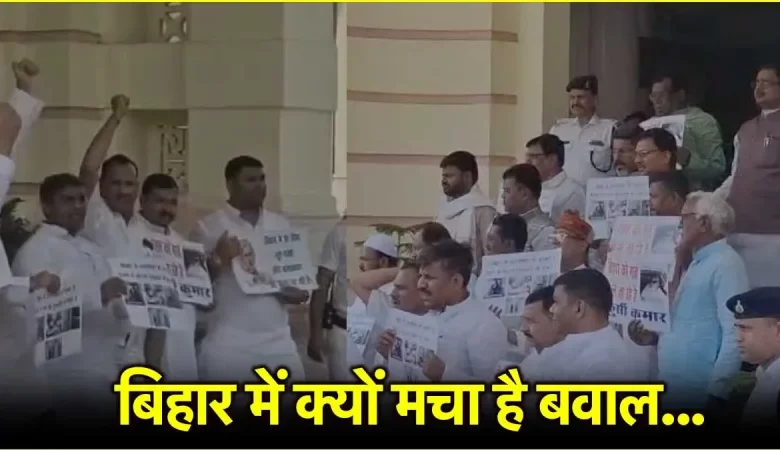 बिहार विधानसभा में क्यों मचा हंगामा? हाथों में पोस्टर लिए नारेबाजी करते दिखे मंत्री और विधायक
