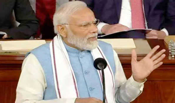 मोदी ने गुरूवार को अमेरिकी कांग्रेस की संयुक्त बैठक को संबोधित करते हुए कहा कि उनके लिए इस महान सदन को दूसरी बार संबोधित करना गौरव की बात है। उन्होंने कहा, “अमेरिकी कांग्रेस को संबोधित करना हमेशा बड़े सम्मान की बात रही है और दो बार ऐसा करना उनके लिए बड़ा सौभाग्य है।”