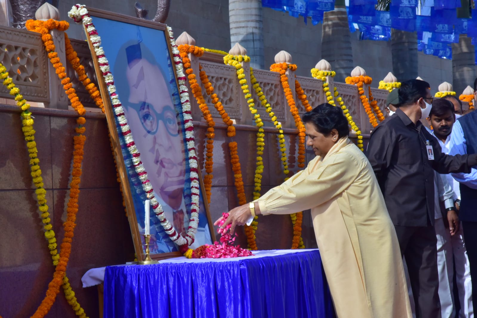 लखनऊ। उत्तर प्रदेश की पूर्व मुख्यमंत्री व बहुजन समाज पार्टी (बसपा) की अध्यक्ष मायावती ने शुक्रवार को आंबेडकर जयंती के अवसर पर पार्टी के प्रदेश कार्यालय पर उनकी प्रतिमा पर पुष्पांजलि अर्पित कर उन्हें याद किया।