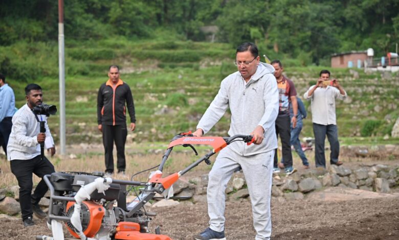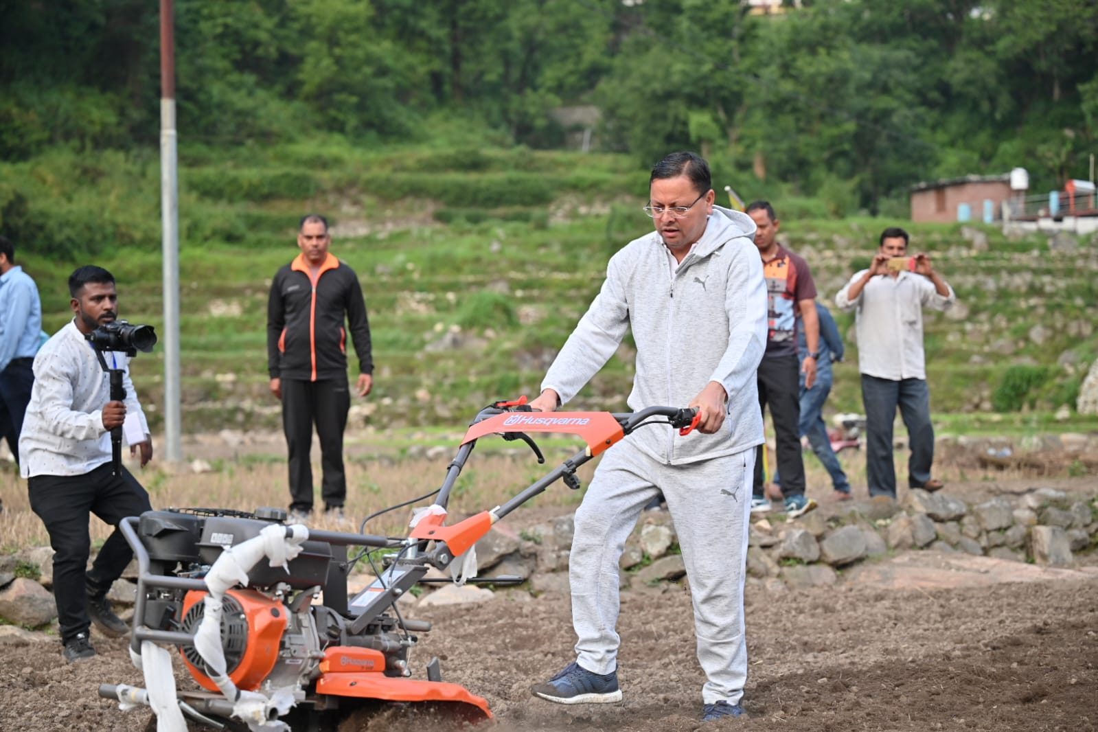 मुख्यमंत्री धामी ने की खेत में जुताई, बोये मंडुआ के बीज,ग्राम वासियों से मुलाकात कर उनका कुशलक्षेम जाना