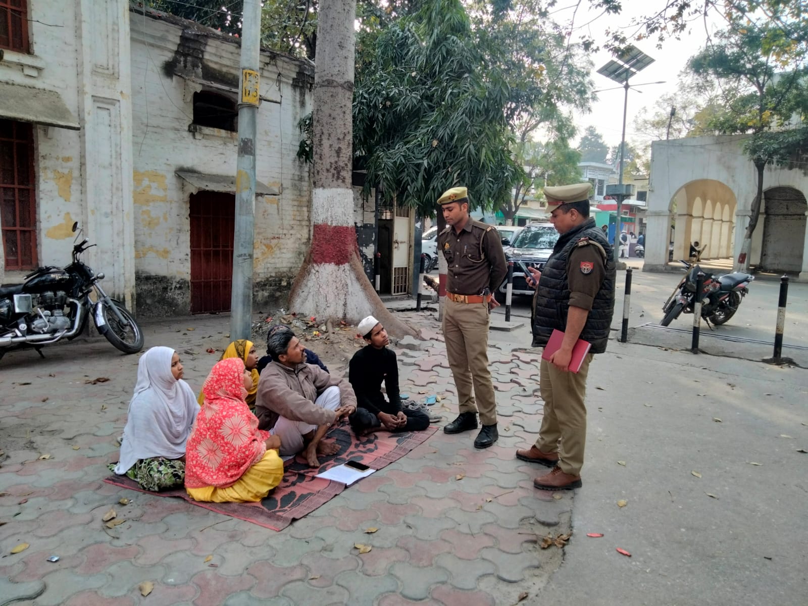 दरअसल मामला जनपद मुजफ्फरनगर में थाना सिविल लाइन क्षेत्र के मौहल्ला महमूद नगर का है।जहां महमूद नगर निवासी जरीना पत्नी इरशाद गली नंबर 6 में अपने मकान का निर्माण कार्य कर रहे थे। लेकिन मोहल्ले के ही रहने वाले आयशा, एडवोकेट आबिद ,और वार्ड मेंबर वाजिद पर आरोप लगाते हुए कहा कि यह लोग मेरे मकान का निर्माण कार्य रोकने में मेरी बाधा बन रहे हैं। जिसमें पीड़ित जरीना के पति इरशाद ने थाना सिविल लाइन को एक प्रार्थना पत्र देकर अवगत कराया था कि मोहल्ले के कुछ लोग मेरा मकान का निर्माण कार्य रुकवा रहे हैं। लेकिन थाना सिविल लाइन की पुलिस द्वारा पीड़ित की कोई मदद नहीं की गई। जिसके बाद पीड़ित जरीना पत्नी इरशाद आहत होकर अपने बच्चों के साथ अपना घर छोड़ कचहरी परिसर स्थित जिलाधिकारी कार्यालय के बाहर जाकर बैठ गए और यह चेतावनी दी कि जब तक पुलिस द्वारा कार्रवाई नहीं की जाती तब तक हम धरने पर ही बैठे रहेंगे, लेकिन तस्वीरों में आप देखिए किस तरह धरने पर बैठे एक पीड़ित को पुलिस द्वारा क्या आश्वासन दिया जा रहा है क्या पुलिस द्वारा पहले ही कार्रवाई की जाती तो यह नौबत शायद नहीं आती।