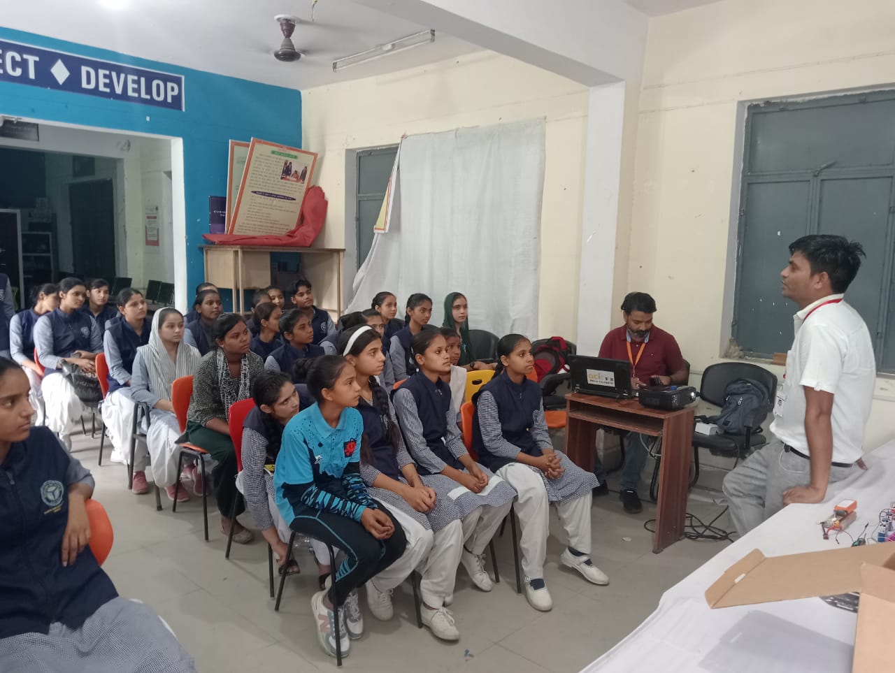 राजकीय कन्या इंटर कॉलेज बागपत में चल रही अटल टिंकरिंग लैब (रोबोटिक्स )की कार्यशाला के दूसरे दिन सभी छात्र-छात्राओं को आर्टिफिशियल (एआई) इंटेलिजेंस तथा रोबोट के बेसिक कार्य शैली की जानकारी दी गई,