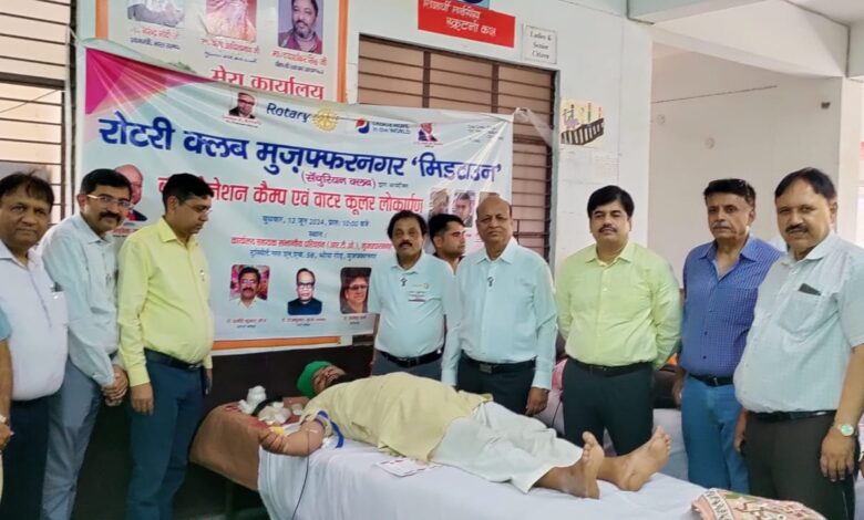रोटरी क्लब मुज़फ्फरनगर मिडटाउन (सेंचुरियन क्लब) द्वारा एक रक्तदान शिविर और एक वाटर कूलर का लोकार्पण कार्यालय सहायक संभागीय परिवहन (R.T.O.), ट्रांसपोर्ट नगर भोपा रोड पर लगाया गया I