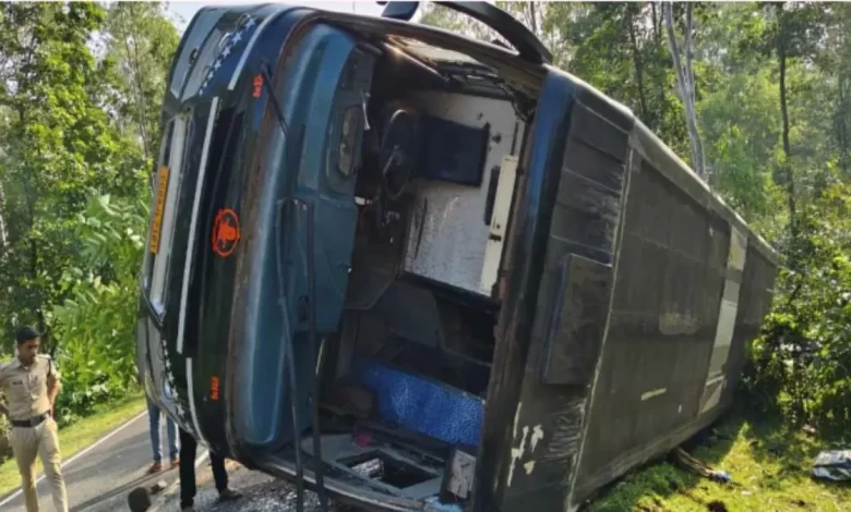 लखनऊ से छत्तीसगढ़ जा रही बस पलटी, 15 से ज्यादा यात्री घायल
