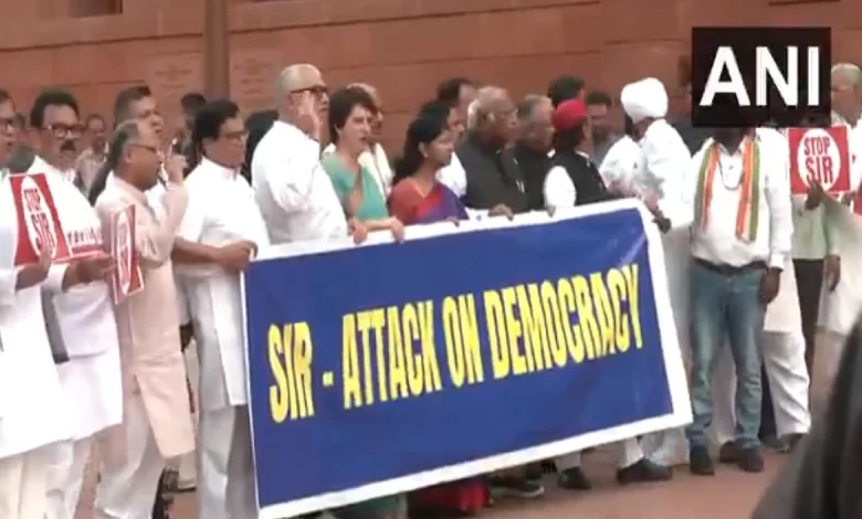 कांग्रेस अध्यक्ष मल्लिकार्जुन खड़गे, लोकसभा में विपक्ष के नेता राहुल गांधी, कांग्रेस संसदीय दल की अध्यक्ष सोनिया गांधी और समाजवादी पार्टी के प्रमुख अखिलेश यादव सहित इंडिया ब्लॉक के प्रमुख नेता  सोमवार को मतदाता सूची के विवादास्पद विशेष गहन पुनरीक्षण (एसआईआर) को लेकर संसद के मकर द्वार के बाहर विरोध प्रदर्शन में शामिल हुए। विरोध प्रदर्शन में सभी विपक्षी दलों ने भाग लिया, नेताओं ने लोकतंत्र पर वार लिखे बैनर और “स्टॉप सर” लिखी तख्तियां पकड़ी हुई थीं, जिसमें सरकार पर लोकतांत्रिक मूल्यों को कमजोर करने का आरोप लगाया गया।