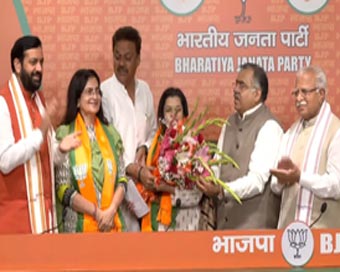 हरियाणा कांग्रेस की पूर्व नेता किरण चौधरी और उनकी बेटी श्रुति चौधरी अपने समर्थकों के साथ बुधवार को नई दिल्ली में बीजेपी मुख्यालय में पार्टी के वरिष्ठ नेताओं की मौजूदगी में बीजेपी में शामिल हो गईं।