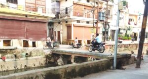 धोबीघाट के निकट पांवधोई पर बना छोटा पुल बिना रेलिंग के कभी भी बन सकता है बड़े हादसे का सबब