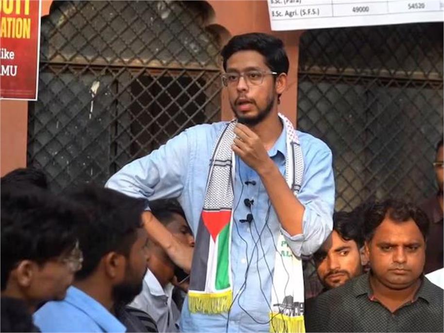 फिलिस्तीन का मफलर पहने AMU के पूर्व छात्र का भड़काऊ बयान – ‘AMU हमारा है, यूपी सरकार का कानून नहीं चलेगा’